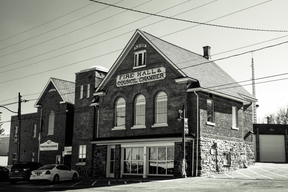 10 Robert Street West is the original site of the Town Fire Department and Council Chambers. The building is constructed with a limestone foundation and red brick exterior. Three arched windows enhance the second floor front façade. The tower attached to the front east corner of the original building features a domed roof and was used to dry fire hoses and housed the fire bell. The architect for this building was J.H. Galt and it was constructed by local contractor Alfonse Tessier. The Town Hall was expanded in 1968 and again in 2007. (Pictured in its original state).